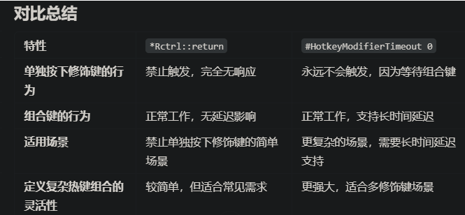 #HotkeyModifierTimeout  0  ;影响热键修饰符的行为:CTRL、ALT、WIN 和 SHIFT。设为 0 时则总是超时 (修饰键总是不会被推回到按下的状态).