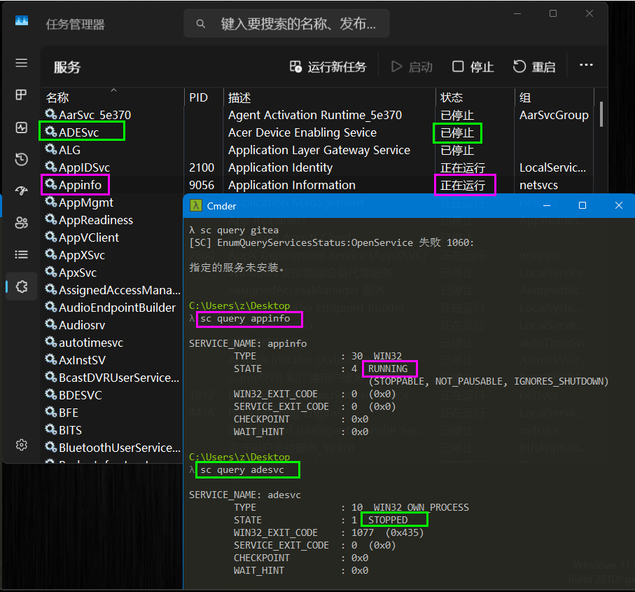 - command: query - 查詢服務的狀態,或列舉服務類型的狀態