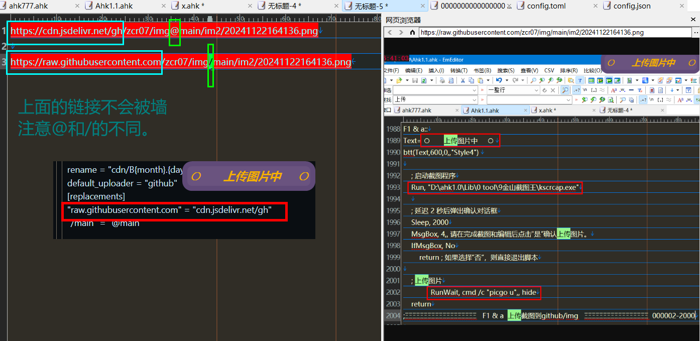 - 注:"raw.githubusercontent.com" = "cdn.jsdelivr.net/gh" 此条可删除,但得到的链接会被墙,有时显示不出。替换为https://cdn.jsdelivr.net/gh
