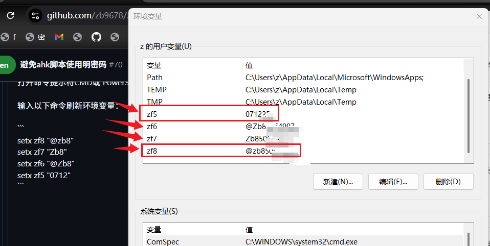 EnvGet, password, zf8                 ; 环境变量设置后需重启电脑