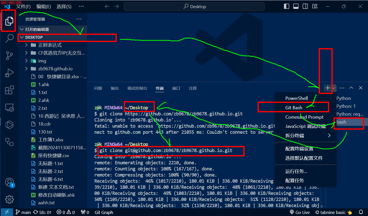 - git clone [email protected]:zb9678/zb9678.github.io.git